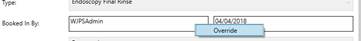 2. To perform an override, right click on the Booked In By Box and press Override.